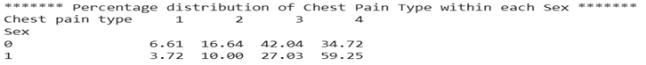 Figure 2: Percentage distribution of chest pain type within each sex